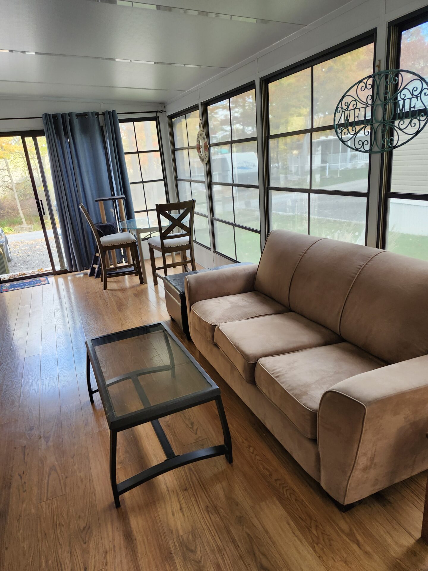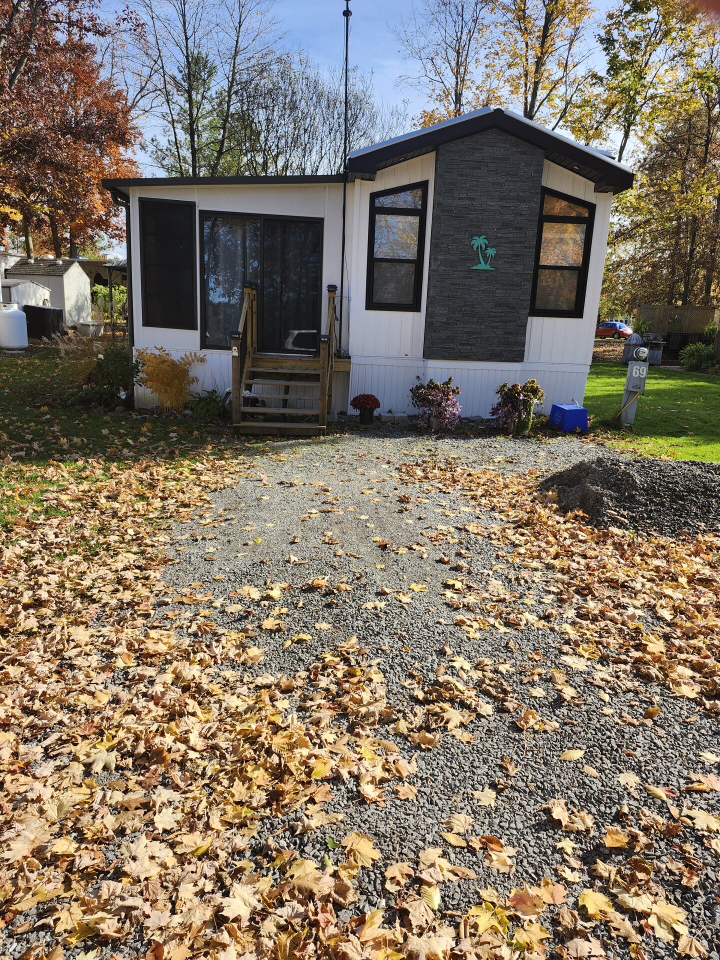 New last year, Northlander 2024 Park Model trailer with 2 bedrooms, 1 bathroom, 10 foot ceilings, and a 27×10 fully enclosed add-a-room.